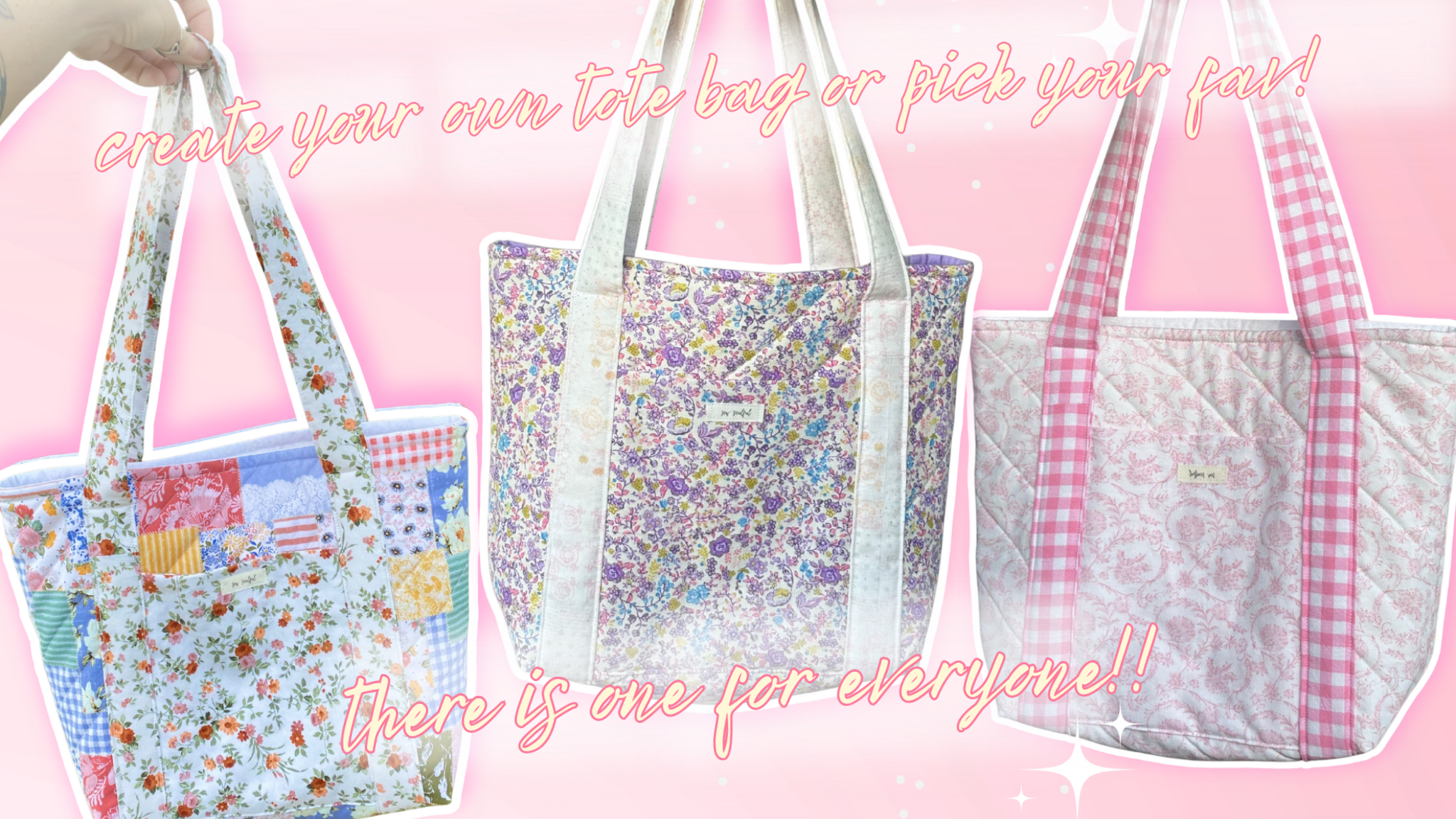 That is the question. Designed to carry it all — your way or mine. Choose your own fabrics or shop a ready-to-ship favorite tote bag.